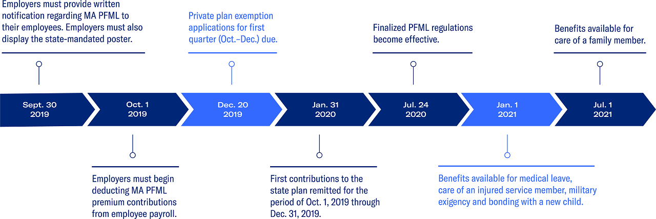 All Massachusetts employers are required to participate. Exceptions include self-employed individuals, independent contractors and municipal employers. An employer can satisfy their obligations through the state plan or a private plan.